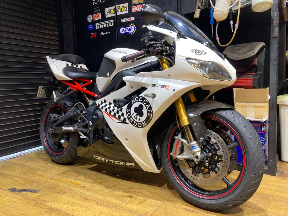 Kファクトリーメガホン、TMR38キャブレター、 ハーディロードバー、 APロッキード&APレーシング CP4125 左右ラジアルマスター、 フロント CP3369?3085? 90㎜ピッチキャリパー、アコサットブレーキホース、リアオーリンズブラックラインリアショック、フェンダーレスetc